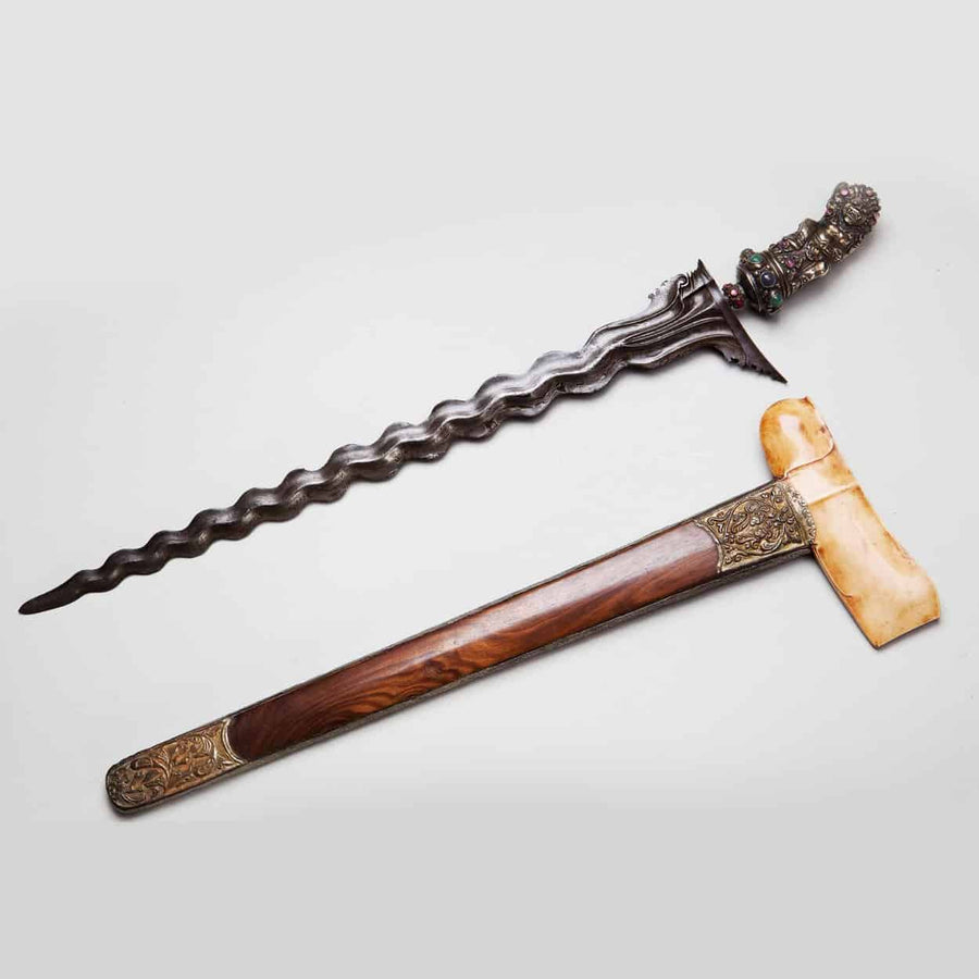 Many weapons were forged for battle but elevated into works of art through precious materials, chiselled decoration, and gem setting. Others were ceremonial or courtly, signifying rank and allegiance.