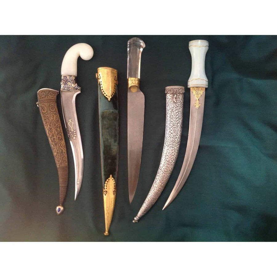 We specialise in swords (shamshir, tulwar, kilij, pala), daggers (khanjar, katar, kard, peshkabz, chilanum), as well as firearms, helmets, and armour from the Ottoman, Persian, and Indian courts.