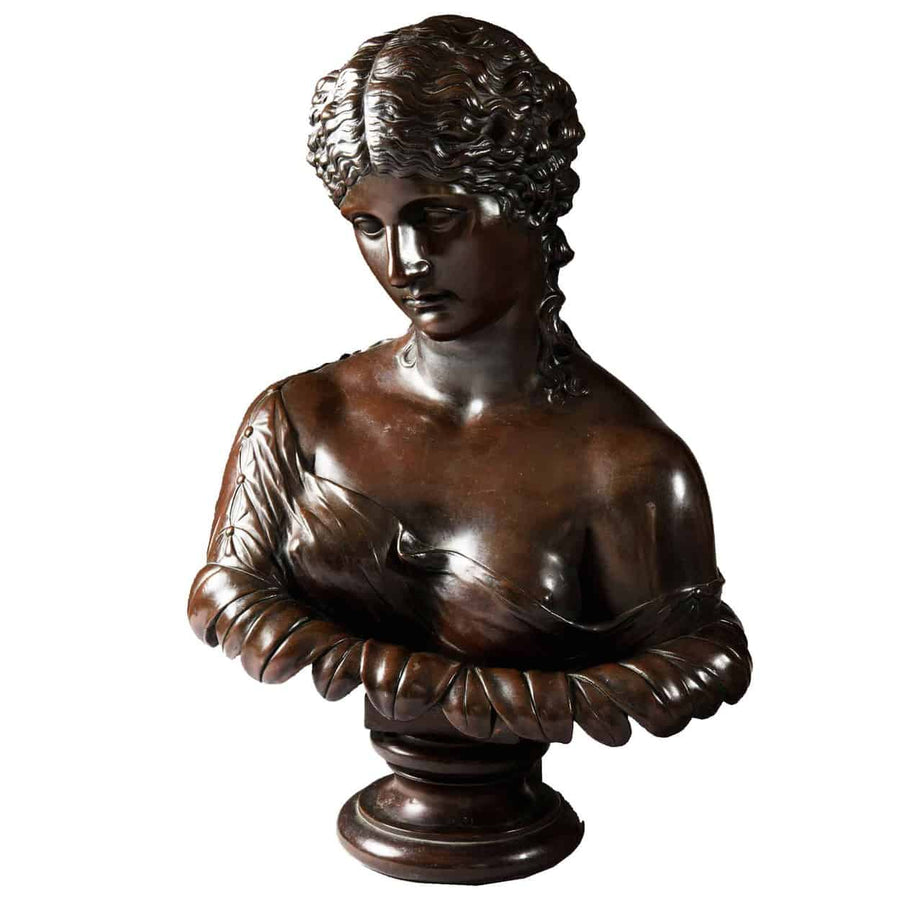 A large bronzed classical bust of Clytie raised on an integral socle.