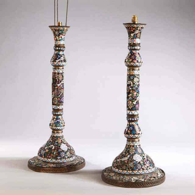 A Large Pair Of Decorative Moorish Enamel Lamp Bases