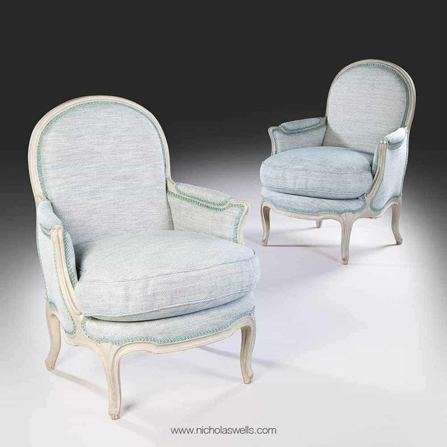 A Pair Of Painted French Louis XV Bergere Armchairs