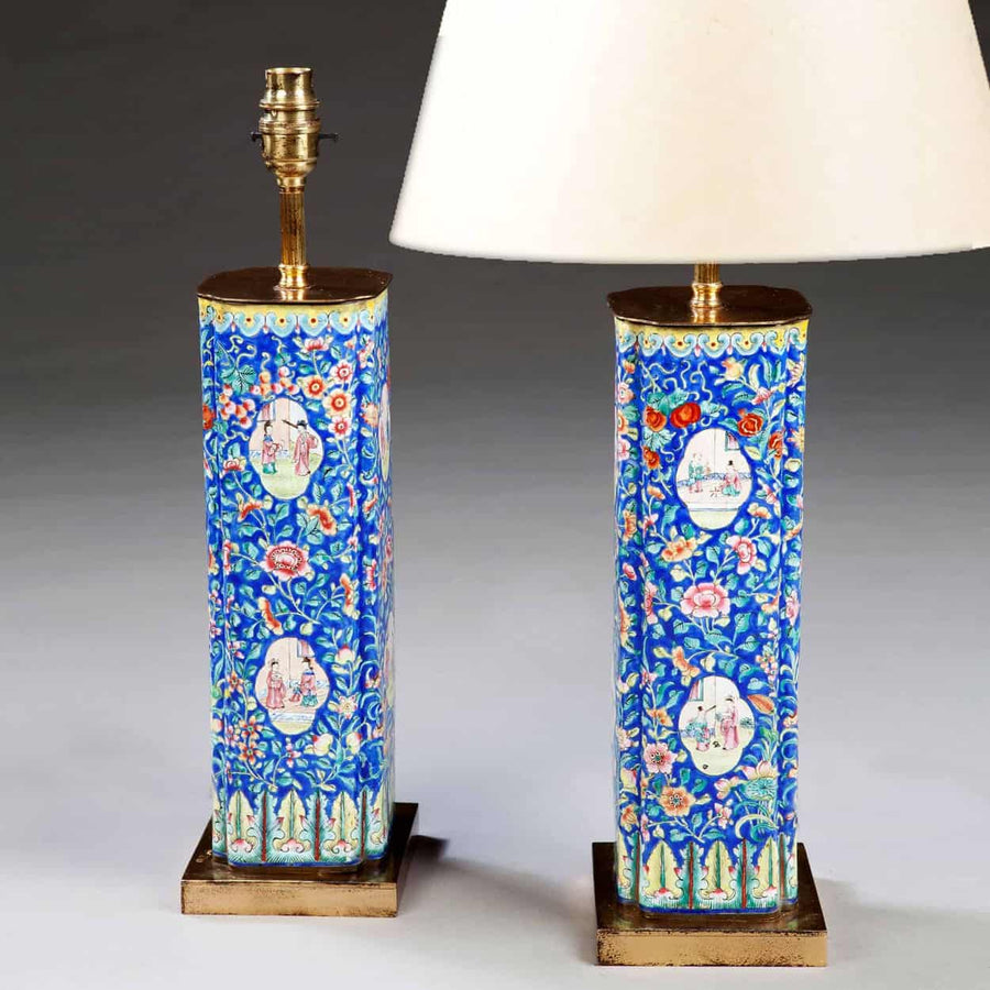 A Rare Pair Of Chinese Export Canton Enamel Vases As Lamps