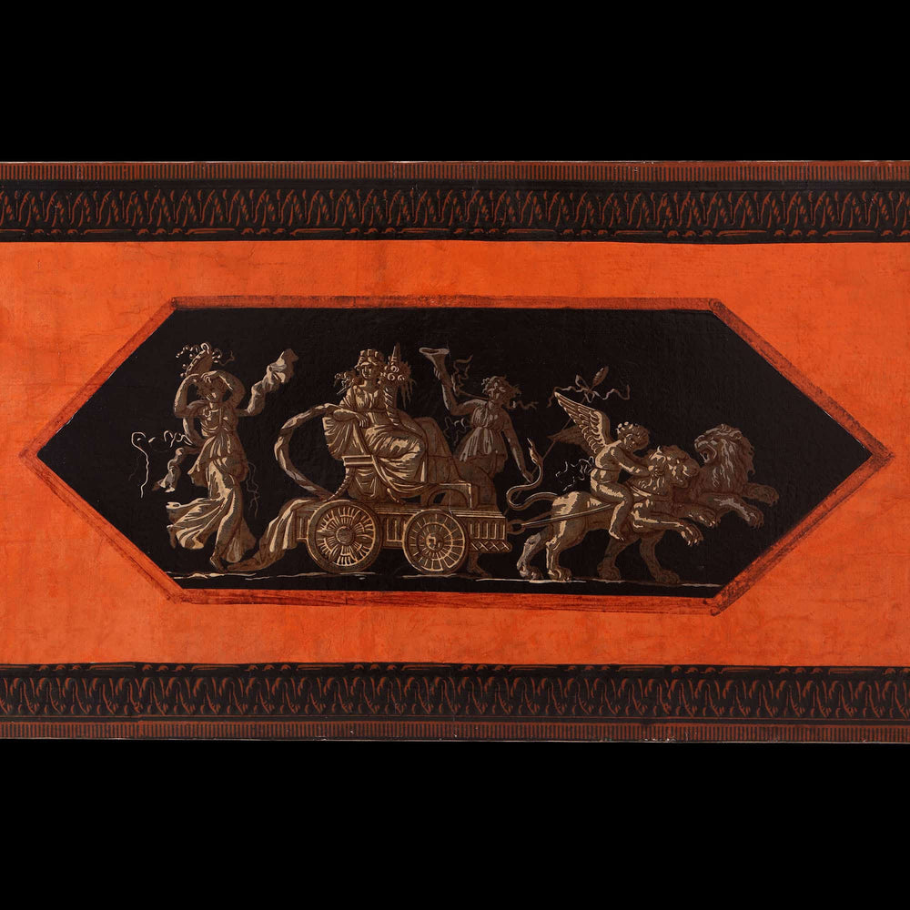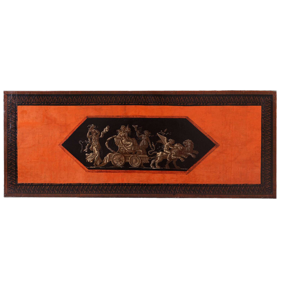 This exquisite Italian Etruscan palette overdoor hails from late 18th century Naples, embodying the antique style so popular among discerning collectors of historic paintings. Charming and evocative, it gracefully revisits the distinctive red ground technique seen on ancient Etruscan pottery as well as the vibrant aesthetics of Roman wall paintings.