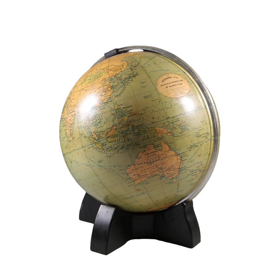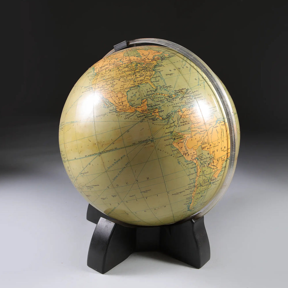 19″ Illuminated Shippers Globe for Georama Ltd – A 19-inch (48.3cm.) diameter terrestrial library lamp globe made up of two sets of twelve chromolithographed gores and two polar calottes laid on perspex.