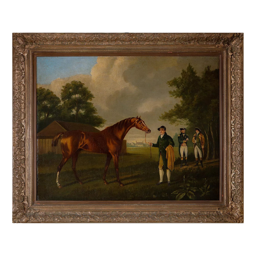 Horse and Groom in a Landscape with Figures and House