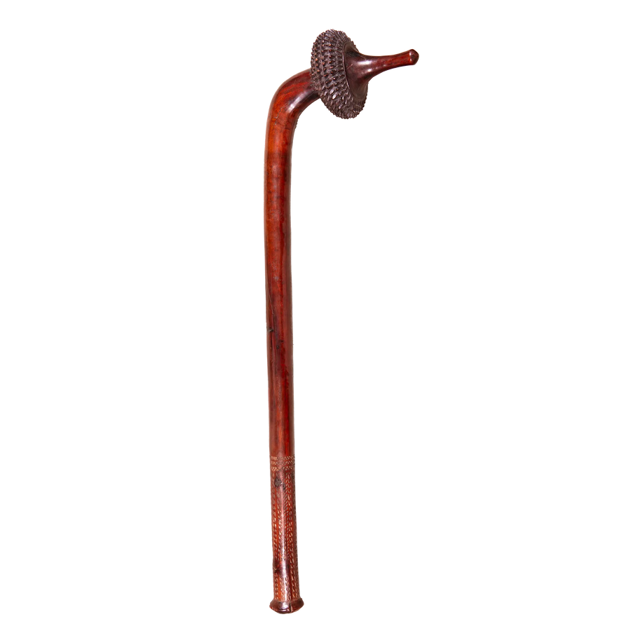 Carved from dense hardwood, Vesi / Ironwood, the Totokia is instantly recognisable by its spiked spherical head and long projecting beak-like spike, designed to puncture and crush the skull of an opponent in battle. Despite its brutal functionality, it was equally valued as a status symbol, carried by high-ranking warriors and chiefs as a mark of power and authority.