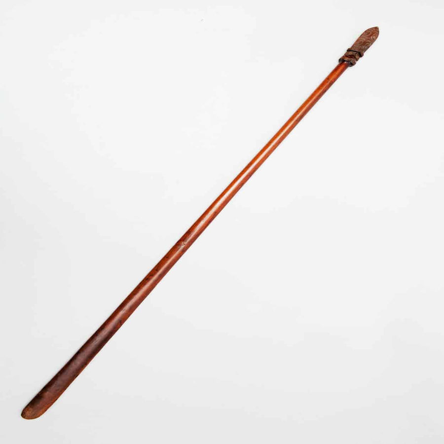 The taiaha’s dynamic balance, elegantly tapered form, and sharply defined features speak to the refinement and ceremonial presence valued by Maori carvers, and its unique silhouette stands out among Oceanic collectibles.