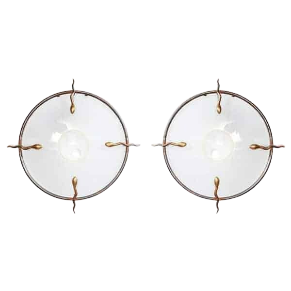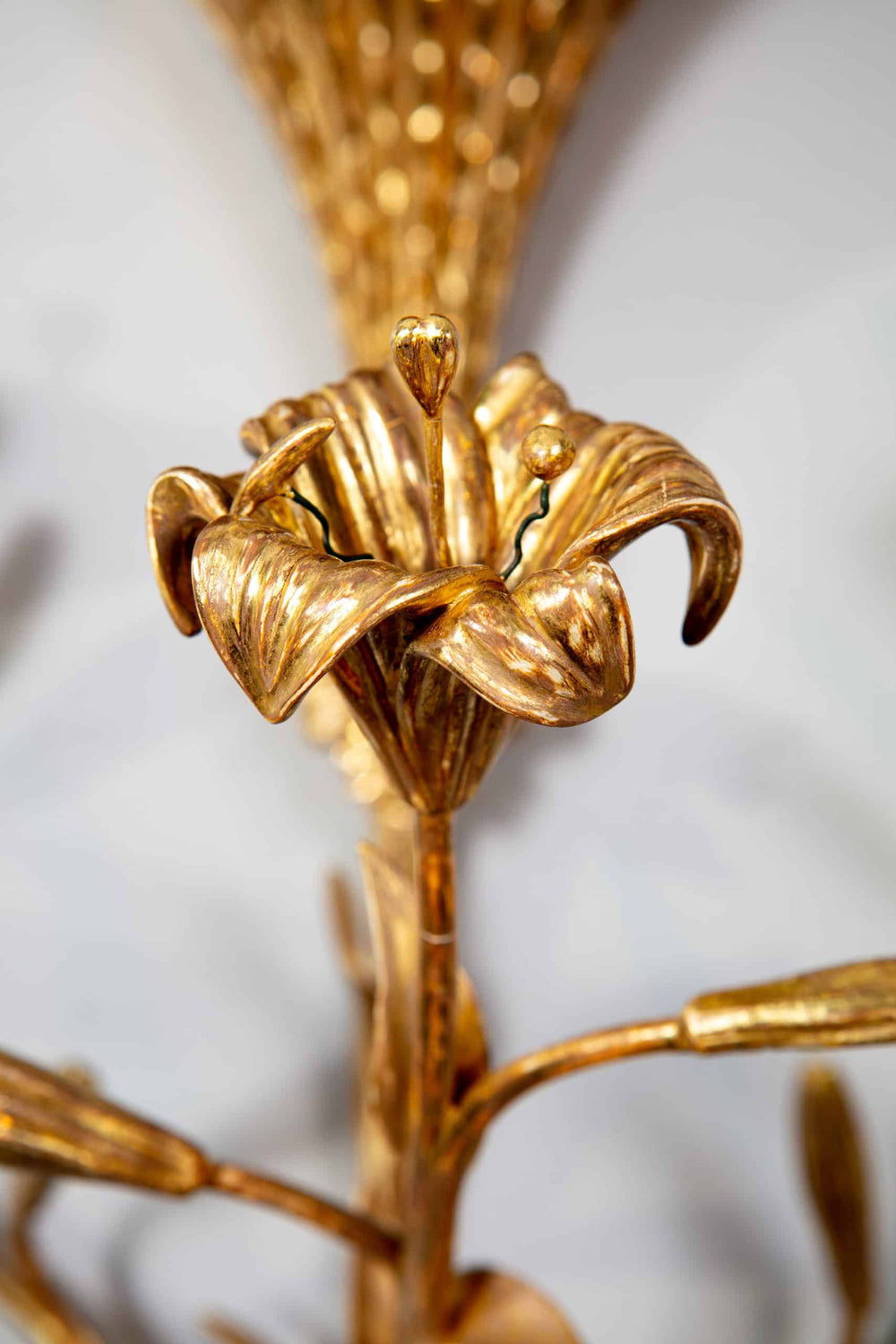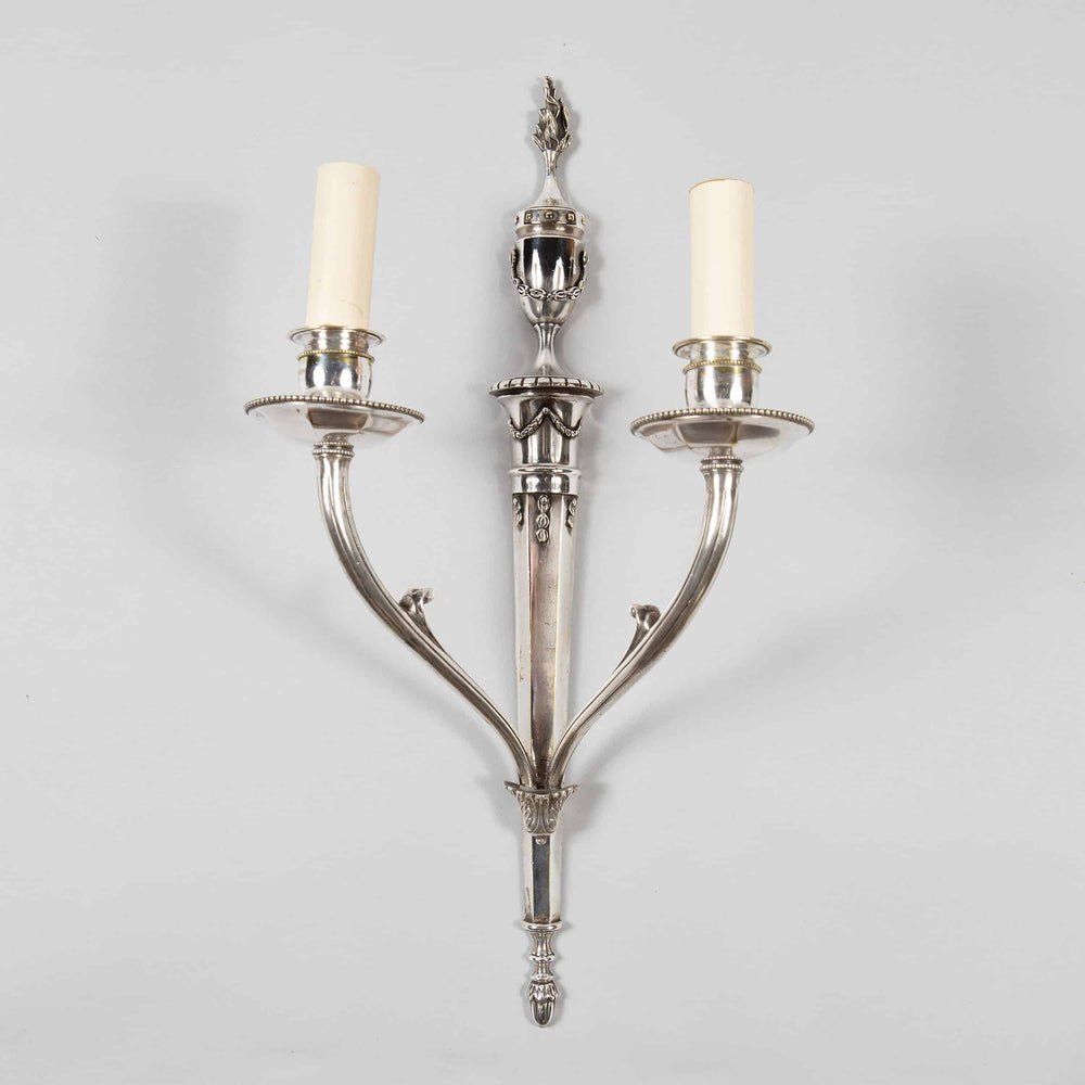 A pair of mid century silver plate wall appliques in the manner of Jansen