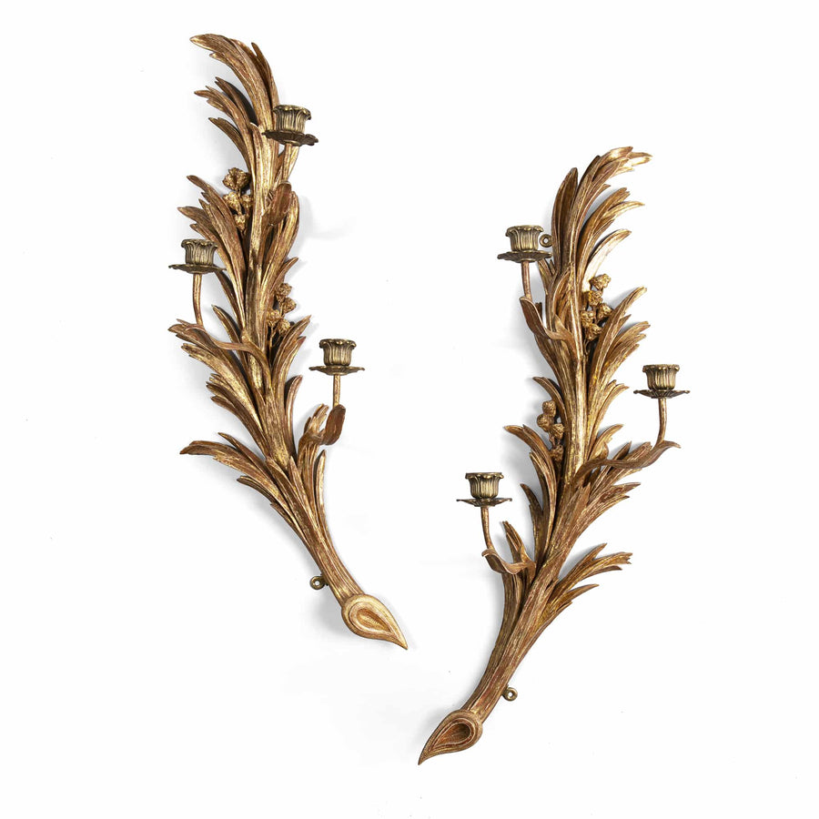 Pair of Foliate Two Arm Anglo Indian Wall Lights