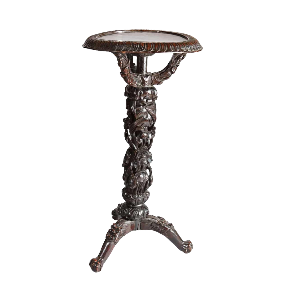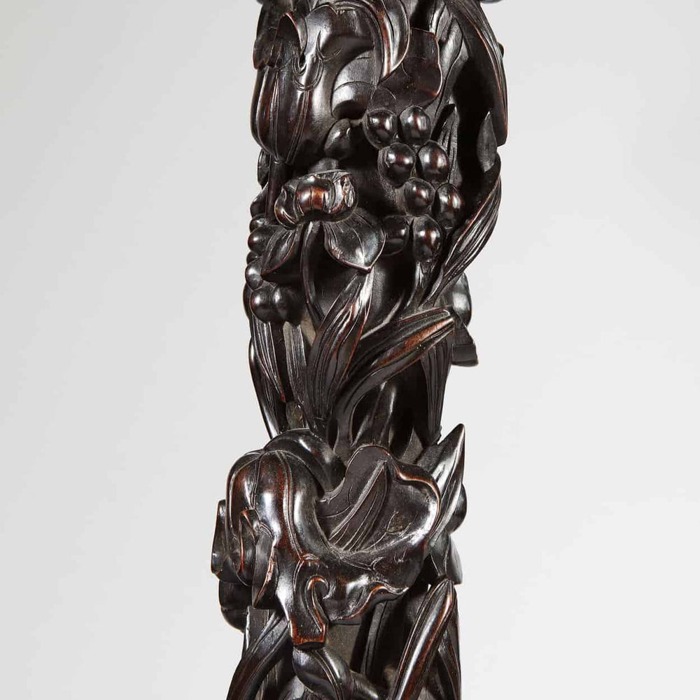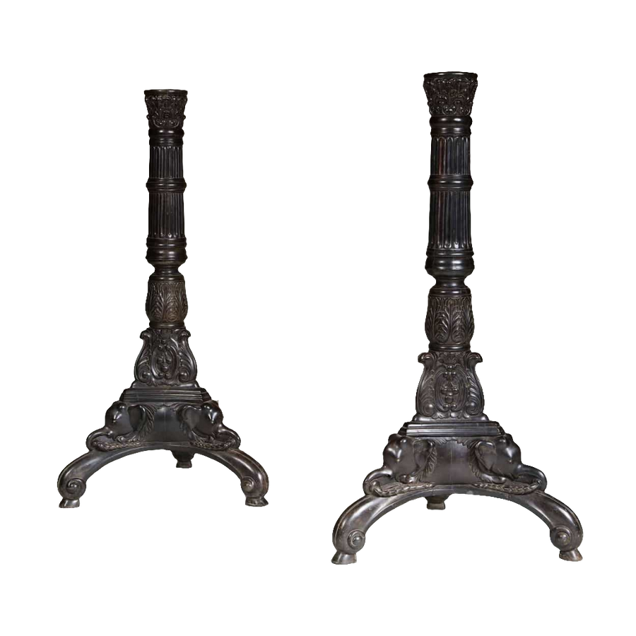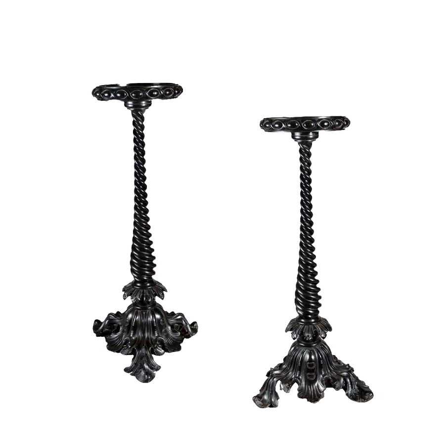 Pair of Solid Ebony Ceylonese Carved Candle Stands