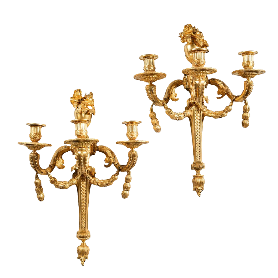 Pair Of Louis XVI Gilt Bronze Wall Appliques - Jean-Charles Delafosse
