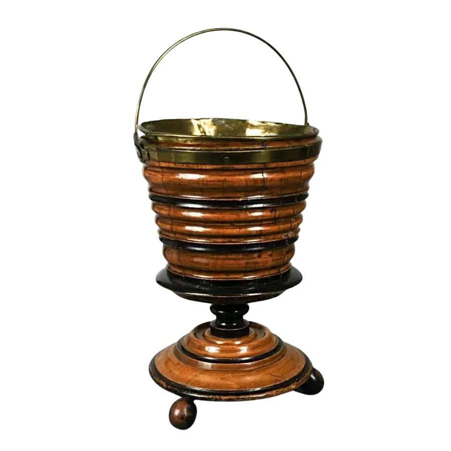 19TH CENTURY TURNED FRUITWOOD DUTCH HOT COAL BUCKET