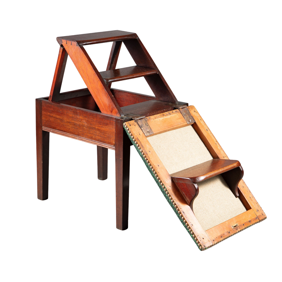 • Ingeniously engineered to transform from a comfortable stool to sturdy library steps, epitomising Victorian innovation in cabinet furniture