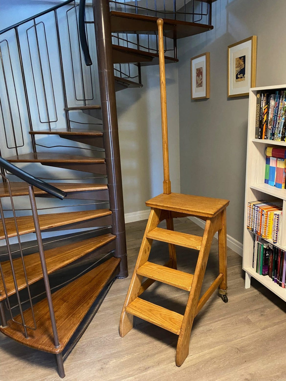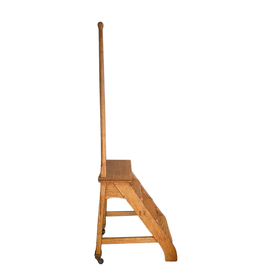 Good quality Arts and Crafts set of oak library steps of a generous scale. Provenance: Private collection, Yorkshire