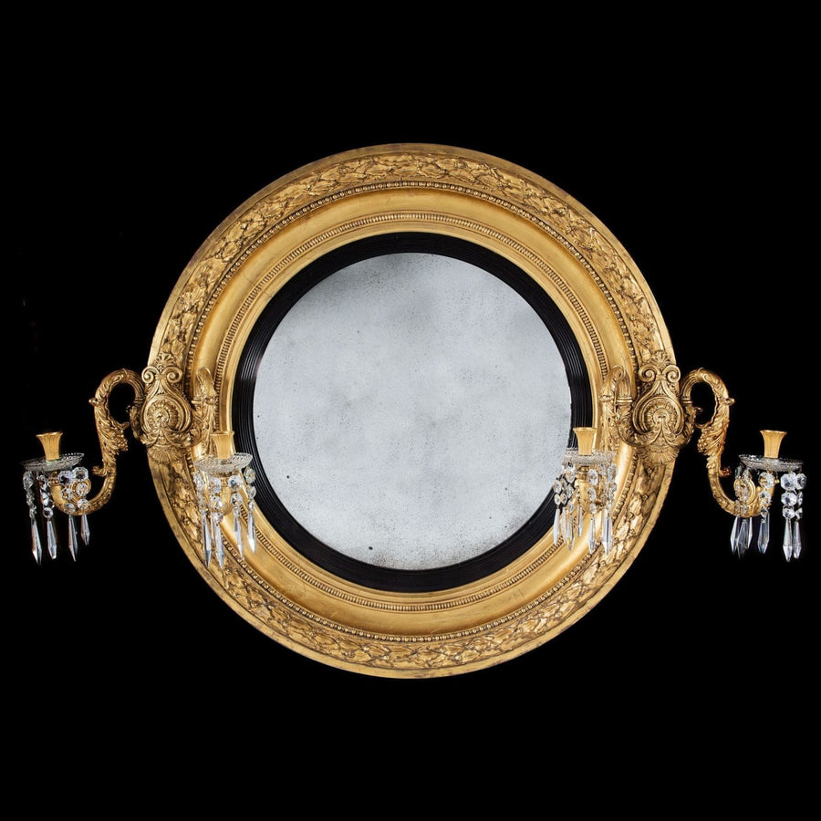 Decorative mirrors, lighting, and gilt-bronze-mounted objets d’art.