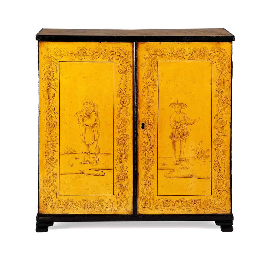Refined cabinets, bookcases, and writing tables with exotic veneers.