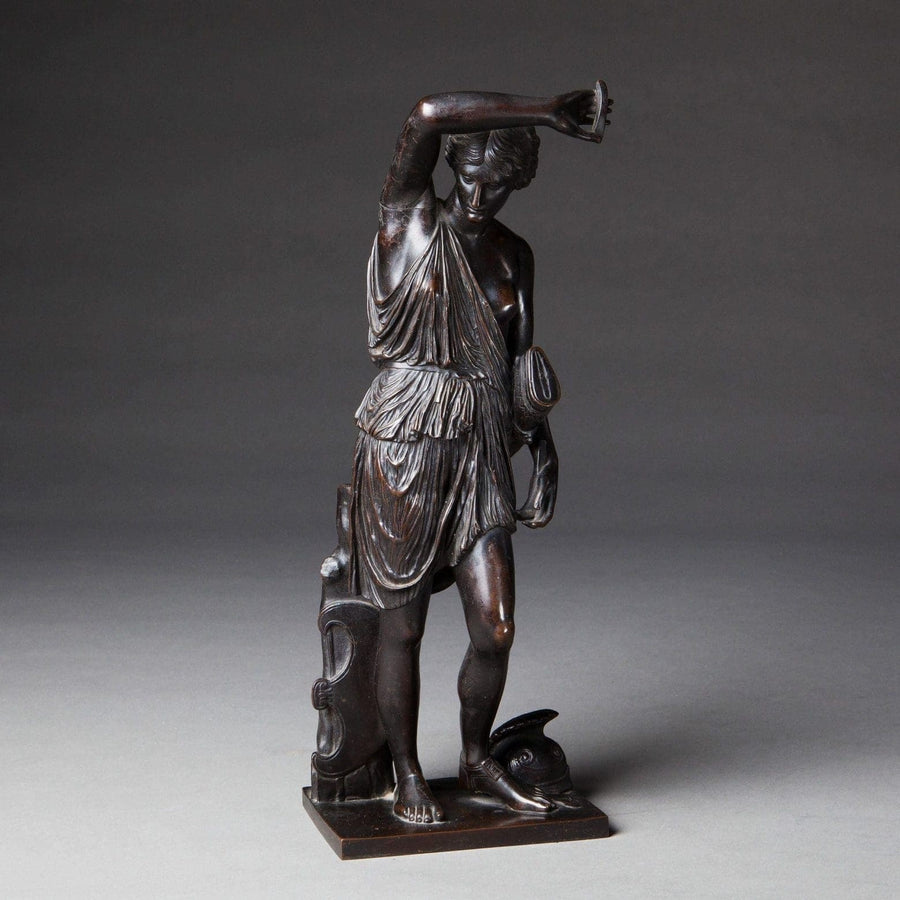 A Napoleon III bronze figure of Diana after the antique, showing the goddess of hunting bearing the fragment of a bow with a quiver at her waist.